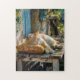 Cozy Cat Sleeping in Garden on Bench Jigsaw Puzzle