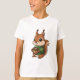 This heartwarming artwork features an adorable brown squirrel standing upright, bundled up in a textured green cable-knit turtle neck sweater. The charming woodland character is holding a rustic wooden mug designed to look like a giant acorn, filled with a steaming hot beverage topped with latte art. With its large expressive eyes, tufted ears, and a bushy tail, this design captures the essence of a cozy autumn morning and the comfort of a warm drink against a clean background.