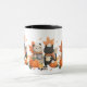Cute fall mug featuring cozy cats, pumpkins, and autumn leaves.