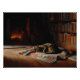 Cozy Fireplace Cat Library Scene Poster