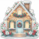 This charming holiday illustration features a cozy gingerbread house adorned with twinkling string lights, lush evergreen wreaths, and festive red berries. The soft snow-topped roof and warmly glowing windows create a welcoming wintertime scene, full of nostalgic cheer. Thoughtful details like candy-like shingles, a blue front door framed with a bright red bow, and whimsical floral accents bring a storybook quality to this seasonal design. Ideal for evoking the warmth and joy of traditional Christmas décor, this piece captures the spirit of home and holiday magic. Perfect for winter displays or festive projects that celebrate classic charm. AI generated artwork.