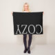 Holiday typography fleece blanket. Text reads Cosy. Background colour can be customised.