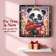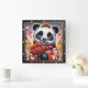 This heartwarming square wall clock features a beautiful digital illustration of a cuddly panda bear enjoying a snowy Valentine evening. The panda is dressed in a cozy red and white knit sweater adorned with heart patterns and wears a delicate crown of red roses. Clutching a lush bouquet of deep crimson roses, the panda is set against a charming winter village backdrop with glowing lanterns, snow-covered cottages, and a starry twilight sky filled with floating hearts. The artwork is encased in a modern black wood-grain frame with bold white numeric markers for easy timekeeping. This functional piece of home decor is an ideal gift for panda enthusiasts, Valentine Day, or as a sweet accent for a nursery or living room. Its detailed textures and warm, romantic atmosphere provide a joyful focal point for any interior space.