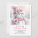 Cozy Pink Coquette Snowman Editable Christmas Kids Invitation