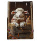 Cozy Sheep and Rabbit in Barn with Flowers Medium Gift Bag