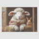 Cozy Sheep and Rabbit in Barn with Flowers Tissue Paper