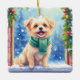 Cozy Watercolor Affenpinscher Christmas Snowy Ceramic Ornament