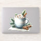 This winter hot cocoa composition centers on a softly shaded blue-gray cup resting on a snowy cloth, rendered as a cozy mug illustration that feels hand painted and warmly nostalgic. Steam-kissed foam and marshmallow hot chocolate accents pile high above the rim, surrounded by evergreen sprigs, cinnamon sticks, and star anise for fragrant seasonal charm. Gentle foliage and subtle patterning suggest cottagecore kitchen decor and invite thoughts of slow mornings and candlelit evenings, while the balanced layout creates a perfect holiday cocoa mug motif that feels both inviting and refined. Nordic-inspired borders echo scandinavian mug design cues, muted blues and creams build a calming neutral winter aesthetic, and the softly glowing highlights bring a sense of hygge home decor comfort to the entire scene. Delicate shading and layered transparencies give the illustration a luminous watercolor cocoa clipart quality ideal for cozy winter storytelling and timeless seasonal visuals. AI generated artwork.