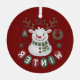 COZY WINTER - REINDEER SNOWMAN - RED GLASS TREE DECORATION