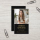Promote your accounting brand with this sleek black and gold business card featuring your professional photo and clean typography layout. The minimalist design conveys confidence and sophistication, while the balanced layout keeps your credentials, contact details, and image front and center. Ideal for accountants, CPAs, tax professionals, and finance consultants who want a premium digital-print-ready card that makes a memorable impression.