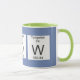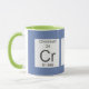Enjoy a cup of coffee or tea in this stylish Blue / Green cup spelling Cr O W with the periodic table.