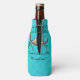 Featured on this stubby can cooler holder on a aqua blue background is a blue swimmer crab with a funny catching crabs logo.