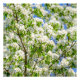 Crab apple tree in full bloom. White flowers and green leaves against the background of clear blue sky