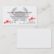This design uses a large, grey, central silhouette of a crab on white for the background image. Two red shrimp silhouettes accent the left and right lower corners. This is a great design for a seafood restaurant looking for a simple business card with the important information and seafood symbols which make it stand out.