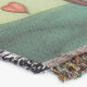 A quality printed throw has its advantages. This is a much finer weave throw than its loopier cousins, and though lighter, it is worth the investment for custom room accessorizing. The back is much prettier than the typical brown, and the fringe on the long sides very vivid, the selvage nicely done. Before photographing, I washed the throw in cold water, delicate, with a thicker woven throw the same size. On tumble dry low, this throw was dry in half the time as the other. This is a very practical quality if you use throws for furniture covers or to wrap up in frequently. The sleekness of the fabric makes it a great layer for accenting or protecting without the feeling of sitting on too much stuff. Perfect for napping or when you feel a light chill coming on. The color printing is beautiful and on this fabric, matched the design and color of my Photoshop image. This is an advantage for blending room fabrics and colors. The fringe on the short sides prints the colors from the design image and therefore varies from the side fringe. I streaked a white fractal line through the plaid pattern to give the illusion of weaving. This printed as crisp as an illusory thread, and put some white in the short side fringe, showing another advantage of print vs loomed- for artistic purposes, line lines, detail, and color integrity can be planned and preserved. My loomed throws have color limitations and more of a needlepoint texture. Print throws reproduce an exact image. The throw felt a little stiff straight out of the package, but this went away in the first delicate wash. Of course I searched the wash water for ink or bleeding and there was none.