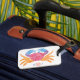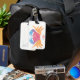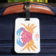 One of my most popular designs, Charlie the Crab just catches the eye. Is he dancing? Just score a touchdown? Throwing a temper tantrum? Originally hand painted in watercolor, the tiny mosaic flower petals in bright blue, red and orange make this crab, not so crabby. Add Initials to personalise this custom Luggage Tag