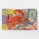 Crabs! A contemporary nautical crab beach painting, with a beach crab, seashells, lemons, and colourful collage whimsical typography, lemons, flowers, and vintage touches for a modern beach house look.