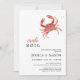 Hand painted watercolor crab Casual seafood boil Couples shower invitation.