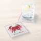 CRAB WHITE on BLACK Stylish Modern Stripes Back Glass Coaster