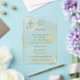 Adorned with soft pastel pink and sage green tones, this baby girl baptism invitation is sweet and feminine. Featuring a delicate floral cross and elegant script, it’s ideal for celebrating your little one’s spiritual journey.