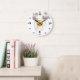 Fun kitchen wall clock done in white, with black numbers and dots, around the edge. Graphics of a cracked open raw egg decorates the face of the clock. Customise to add any text you want. Makes a great gift idea.