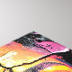 This abstract design features a mural of a beautiful girl’s face in varying colourful cracked paint. The paint is chipping away exposing what’s underneath the skin. Hopefully you have inner beauty because outer beauty will crack and shed like paint chips over time. Enjoy it while it lasts!