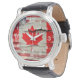 Perfect wrist watch for a Canadian American featuring a print of the American flag fused with the Canadian flag on rustic wood with paint peeling off.