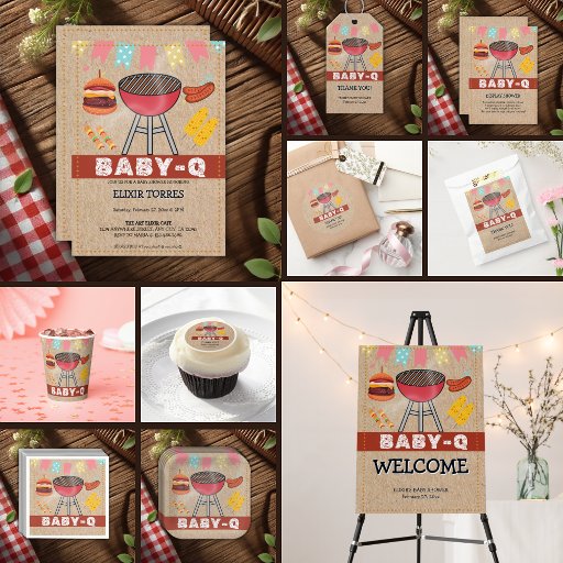 Celebrate your little one’s arrival with the Baby-Q Grill Baby Shower Collection, a fun and rustic BBQ-themed design perfect for a casual, outdoor gathering. Featuring craft background, grill-inspired accents, and charming party essentials, this collection sets the stage for a warm and festive celebration. If you need any other matching product or customisation, kindly message via Zazzle.