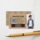 Looking for boy graduation ideas? This boy graduation stationery set with a fun, unique photo graduation party invitation with a hall pass theme and accessories featuring a tartan plaid pattern over the craft paper background are just the ticket to celebrate your cool grad in style. These boys graduation college fund QR code enclosure cards can be easily and fully customised. A perfect boys high school graduation thank you card that can be easily integrated into any other graduation party theme. Black and brown colour scheme, craft paper background.