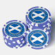 The national flag of Scotland, St. Andrew`s Cross or Saltire, is infused into a ring that is not unlike a cog or gear. The coloring of the ring is in the blue color of the flag, and the text and decorative stars that are around the ring, are done in faux silver. The text and decorative stars have been given a raised look, which helps with their definition.