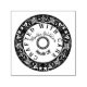 This ink stamp depicts a round decal bordered by Script