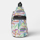 This personalised printed sling bag has a crafting sewing word search pattern with a vintage news paper printing texture in lots of bright colours. You can make the pattern on this sling bag larger or smaller. Great gift for anyone that loves crafting, sewing or word search games.