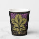 These paper cup features Leslie Sigal Javorek's adaptation of a classic American Craftsman pattern, with a large single mossy green grape leaf, umber shaded vines, surrounded by masses of grapes in orchid gradients, all set on black for dramatic flair. Perfect for your next Wine Tasting Party!