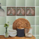 6 inch Oak leaf tile in the Craftsman style for the Bungalow fireplace or kitchen backsplash or Bathroom. Metallic copper and patina green background.