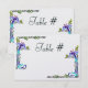 Striking 2-Sided 3.5"x5" Table Number Cards on an Icy Metallic-FInish stock, adorned with cornices of brightly coloured peacocks and vines created in the Arts and Crafts style that first became popular in the days of Wm. Morris & Henry David Thoreau. Card holders can be found at any local party or art supply shop. Coordinates with TheMarryingType's Craftsman Peacocks Wedding Collection. #zazzlemade