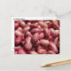 This postcard features lovely patterned cranberry beans, freshly picked and shelled. Cranberry beans are known by several names such as borlotti, French horticultural beans or just plain shell beans. They get their name from their varicolored appearance. They are usually white, pink or cream in colour with deep red or cranberry marks that are distributed in different patterns on the bean. They have a mild flavour that is somewhat comparable to nuts.