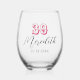Cranberry Birthday Number | Black Name Date Stemless Wine Glass