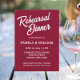 Simple style wedding rehearsal dinner invitations that feature white, stylised lettering on a trendy, cranberry red colour background. Edit your invitations by replacing names, date/time, location, and contact info with your own. Select your invitation size and paper style.