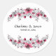 A Cranberry Red Watercolor Blossoms Classic Round Sticker, designed with bright Cranberry Red flower with black accents on a white background. The front text includes the Bride and Groom's Names and Wedding Date. To personalise, simply insert your Wedding details into our step-by-step template. Be sure to view the entire Cranberry Red Watercolor Blossoms Wedding Collection.