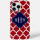 Cranberry Red and White Moroccan Quatrefoil Trellis Pattern #5, Navy Blue Quatrefoil 3 Initial Monogram