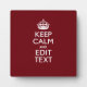 Your personalised Keep Calm saying on a fine custom burgundy red accent colour style decor. A personalised Keep Calm style saying on a one of a kind gift. Humourous or whimsical try on your creative words on two editable lines of text. Remember to use CAPITAL letters for best results.