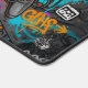 Cette image est une œuvre d'art numérique de style street art et gaming, conçue pour un tapis de souris de grand format (deskmat).