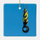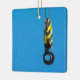 Crane hook with yellow and black stripes hanging ceramic tree decoration