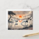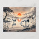 Crane in the Marsh at Sunset Chinese Ink Painting Postcard