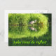 Crane is reflected in a pond's water with the brilliant green colours or weeds and trees in the background. The words "take time to reflect" are imprinted on the item.