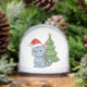 Cranky Grey Tabby Cat Red Hat Christmas Tree Snowglobe