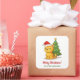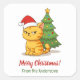 Cranky Orange Tabby Cat Red Hat Christmas Tree Square Sticker