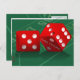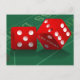Red Dice with Las Vegas text on them, set upon a craps table background. ~~~