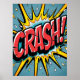 Bring the explosive energy of a classic comic book panel to your wall with this dynamic "CRASH!" pop art poster. This unique artwork captures a moment of pure impact, featuring shattered, fractured lettering surrounded by flying glass shards, motion lines, and a vibrant starburst. With its bold colours, retro halftone dots, and energetic composition, this poster is perfect for fans of vintage comics and pop art, making a loud, chaotic, and fun visual statement in any space.