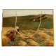 This design features a painting by the American artist John Singer Sargent (1856–1925). It depicts a fighter plane from the First World War, which has crashed on a hillside in a rural English landscape. The farmhands are working on a field in front of the crashed aeroplane. They are gathering the crops into bundles. A woman is tying a sheaf of crops together, while the man is cutting the crops with a long-handled scythe. There are both bent over their work, seemingly unaware of the dramatic scene that has unfolded behind them. The original artwork was painted in 1918.